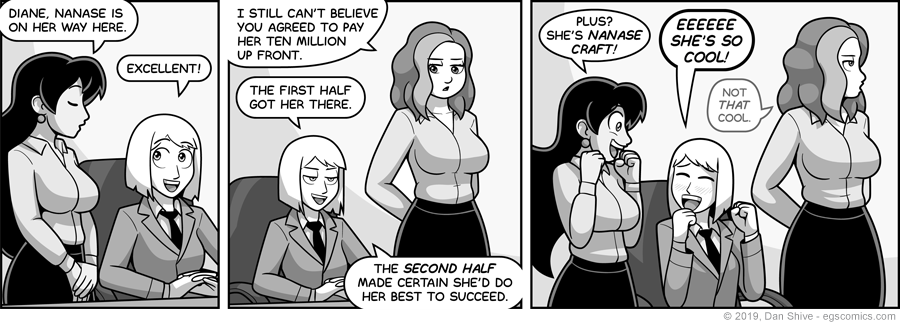 Also, yes, I continue to experiment with Diane's hairstyle. It's not like she didn't have some free time while Nanase and Sarah were getting the scales for her.