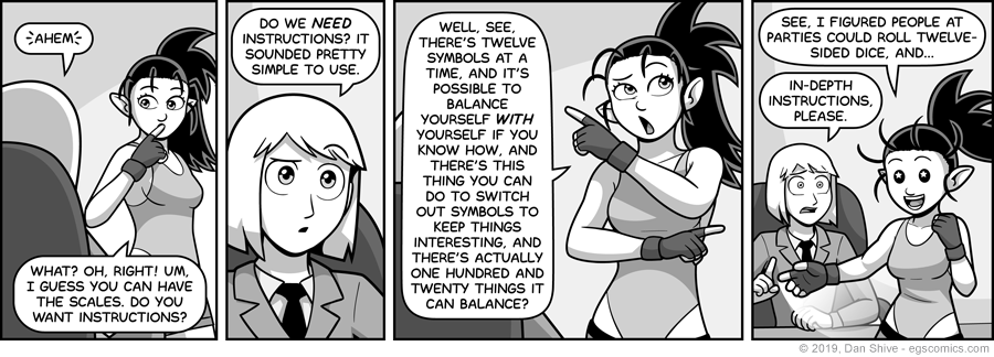 As might be apparent at this point, I'm allowing myself a bit of flexibility when it comes to proportions for the sake of comedy. I'm not 100% it "works" here, but I am certain I like that last panel, so... Mileage will vary?