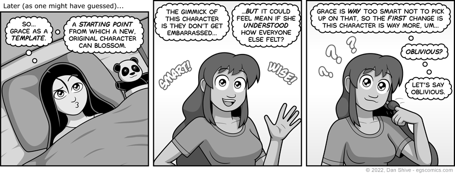 Ashley has high opinions of Grace. TOO HIGH! That shall not do for her stories and their wacky hijinks.