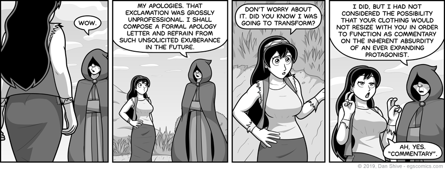 It is SO commentary! You grow a lot in these games, and your clothes all just fit anyway! ABSURDITY.