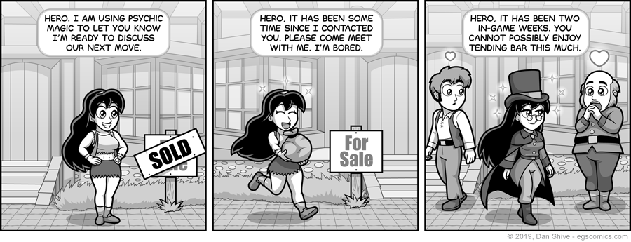 Actual Non-Player Characters in games tend to be much more patient than this fellow about having to wait, being perfectly fine with you doing whatever for in-game months or years while they wait.