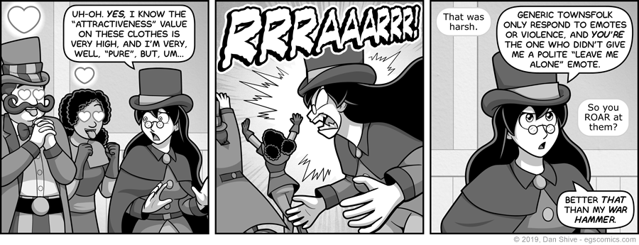 I had severe writer's block prior to making this comic, which is clear evidence that I was distracted by other matters, because this is perhaps the most obvious commentary one could make on Fable 2.