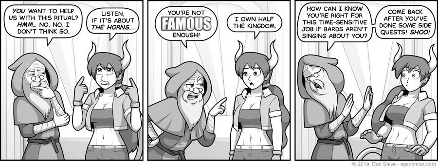 It was an actual mechanic in Fable 2 that some quests would be unavailable if you weren't famous enough, and I'll say this much for that mechanic: It's nifty that it didn't matter how you got famous enough, just that you WERE famous enough, which meant you had options.