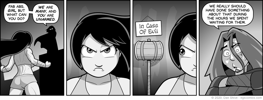 I debated whether to make a joke about stored equipment, the implication being that Rhoda was just carrying a giant hammer around much like Susan somehow carried all of her potions and such around, or what's seen above.