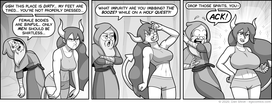 I was just going to have him say "ack" in panel three before I realized the poses I'd given him made it look like he'd moved closer beforehand, so I tried to imply he was moving closer to try and grab the bottle.