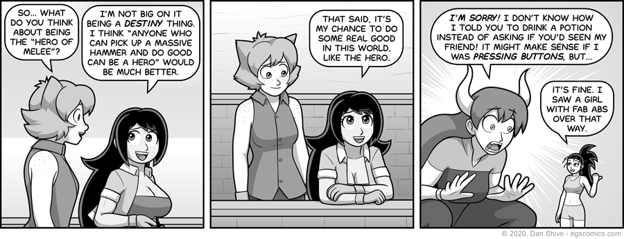 I needed something decidedly not-heroic for Susan to be doing in the last panel, and I'd recently been experimenting with changing buttons around in Fallout New Vegas.