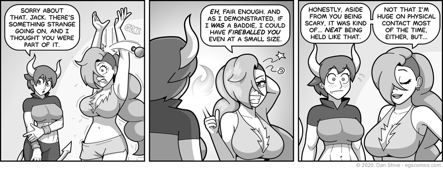 I mean, realistically, the bottle would probably be dropped prior to reaching normal size, and I'm not sure how she actually held it above herself to begin with a t 1:12 size, buuuuuuuuut I wanted to draw a bottle falling on Jay's head.