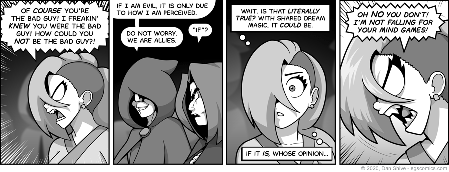 I had fun illustrating this one. I should try to make that a goal, rather than just a possibility, more often. I'm not actually sure whether it takes more or less time to make a comic when I indulge myself art-wise given how my mind wanders when I don't.