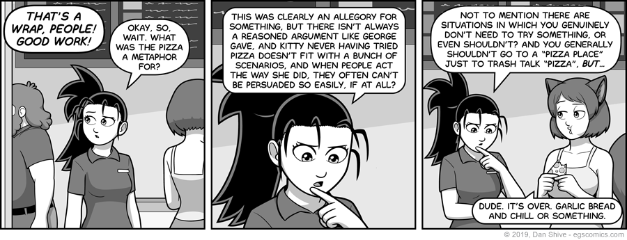 When I first conceived of this storyline, I wasn't planning to comment directly on how metaphors and allegory can fall apart under scrutiny and/or nitpicking (the latter still being scrutiny, but of the sort that makes others roll their eyes).