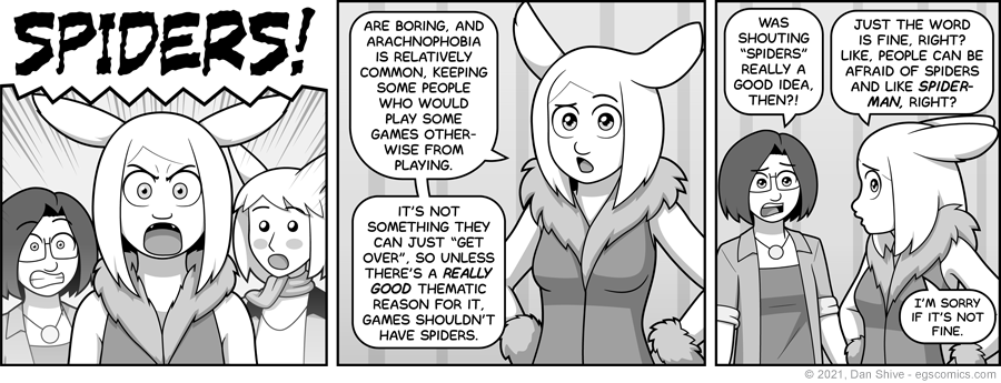 That doesn't mean people can't have spiders in games, but it is worth asking if it's worth have spiders in their games.