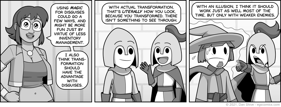 In theory disguises added via ability, such as magic or sci-fi nonsense, is superior to having to lug around changes of outfits. The Outer Worlds had hologram disguises that I hated, however, so it's not a sure thing.