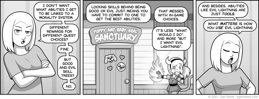 Has this ever been a controversial point among players? I know the people making games have liked including such things, but I don't think I've ever heard a player say "I LOVE being locked out of abilities based on moral choices!"