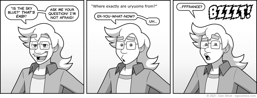 "I'm not afraid" might seem an odd thing to say in context, but it's a reference to a scene from Monty Python And The Holy Grail. I was not planning to reference the movie when I first wrote the comic, but I was so vividly reminded of the scene when I started putting text in the comic itself that I decided to just run with it.