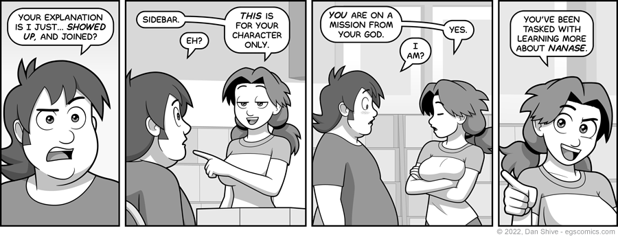 I wasn't sure whether to have Ellen tell Rich to this in private, and considered either using the excuse that this was going to be a single game, and/or Rich being given the option to keep his reasons a secret.