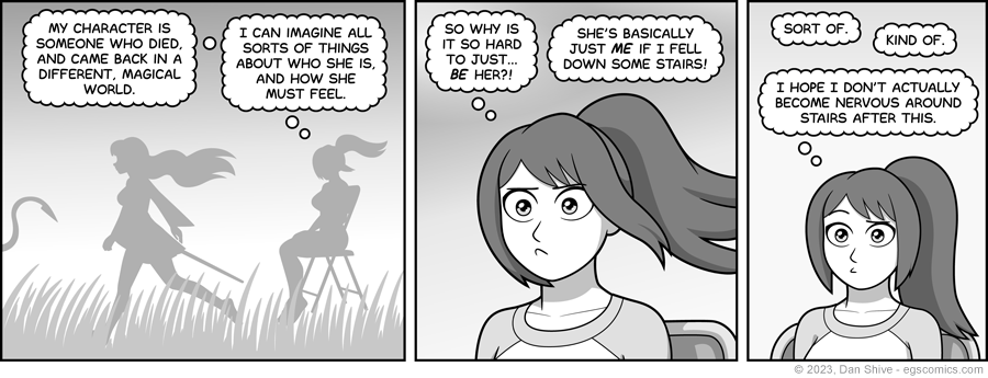 I wasn't sure if I wanted to animate the chair in any way. I can see an argument for the chair being totally stationary, and Nanase seemingly teleporting around during in-character moments. In some ways, it makes more sense metaphorically for the chair to remain totally stationary.