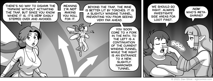 (Also, that last panel is totally cheating visually, because Larry referencing meta-gaming would definitely be out of character.)
