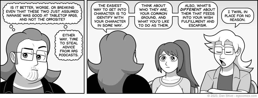 Past me: "Okay! Time to draw Nanase's 'I'm taking this seriously' face! Huh. That sort of looks like just her regular face. Does Nanase have resting 'taking this seriously' face?"