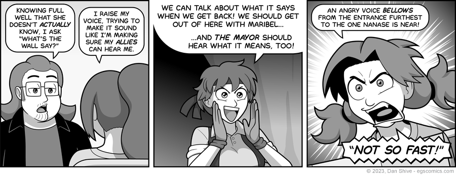 Fortunately, Ellen didn't feel it was necessary to make Nanase roll for "yell a thing the villain would reasonably NEED to act on in some way," so Nanase was saved from rolling a three.