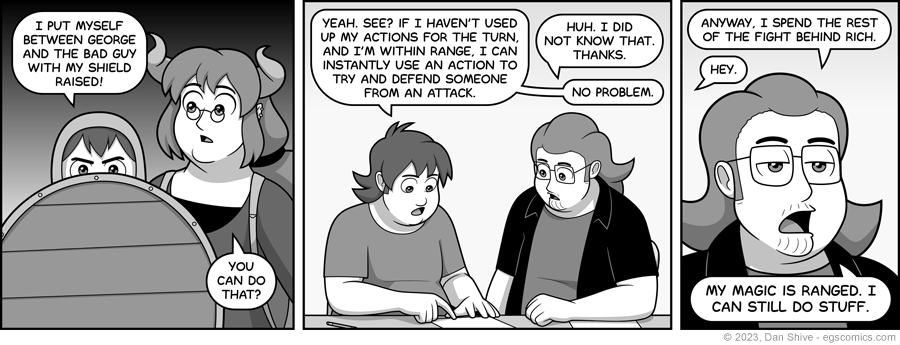In any case, I wanted Rich to defend George, so there's a mechanic that let Rich defend George.