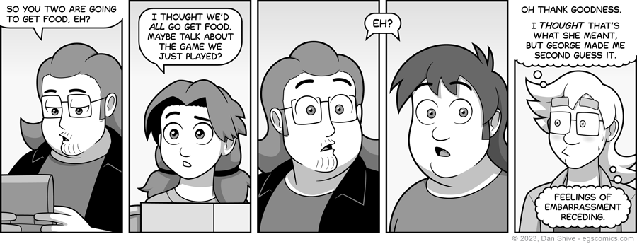 Larry was originally going to join in the "eh?", leaving them one short of a barbershop quartet.