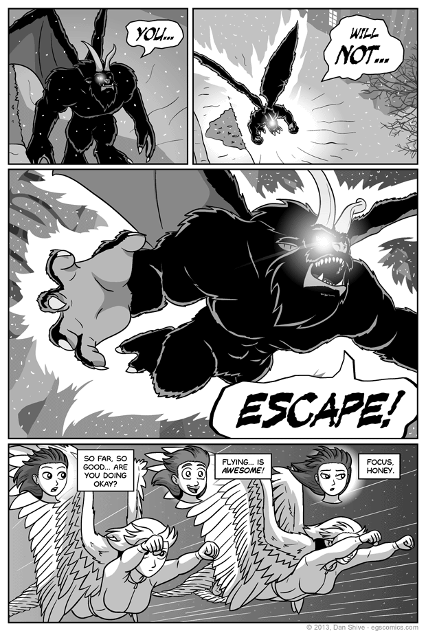 I thought about keeping Nanase and Ellen silent for a bit to ratchet up the tension more in this comic, but no. Ellen flying for the first time demanded proper acknowledgement, and character moments like that have very expensive attorneys at their disposal. I don't know if they're properly trained or not, but they had suits and everything. There was no choice in the matter.