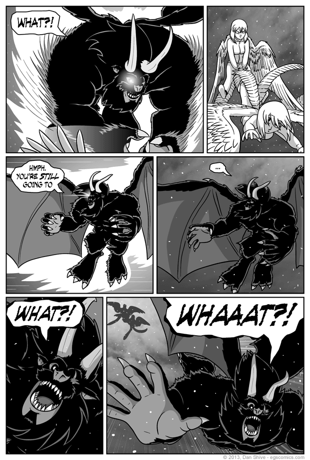 As for why Not-Tengu's falling, there's enough information to accurately guess at this point, but the comic itself will say later, so I'm going to wait on that. I will say, however, that this comic is one of the reasons why I decided Not-Tengu's fast flying would be accompanied by a glow effect.