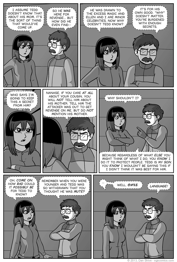 The whole New Year's Eve party storyline began as a very vague idea to try and have a mystery plot with suspects and actual (well, TV show style) detective work. In it, Ellen would have been suspected of transforming someone, primarily because she was the only person present with the known ability to do so.
