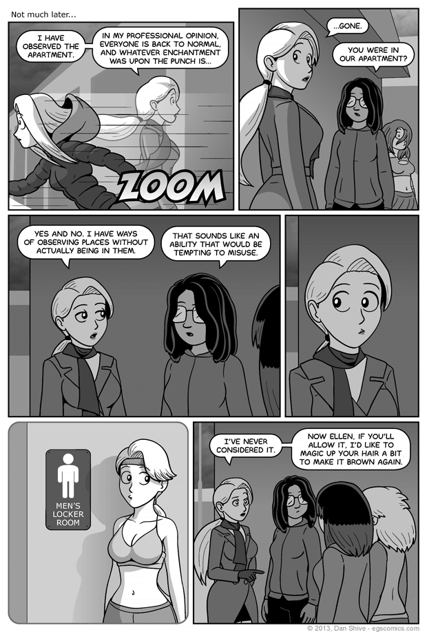 She was originally less a character with potential for recurring and more just intended as a suspect, which was the original reason for her interest in spooky things. Given a situation where someone else clearly has magic, but they don't know who, I figured a character with an interest in such things would be a logical suspect.
