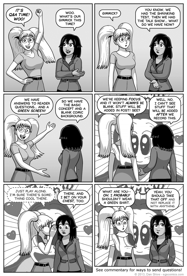 Most Q&A's involve some sort of behind the scenes experimentation, and this Q&A is no exception. I'm making an effort to try out different eye shapes and styles, and giving the characters visible irises (part of the eye where eye color is found).
