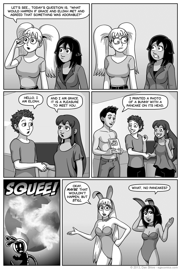 Oh, and for the record: I chose the bunny with a pancake on its head before I thought of putting Amanda and Lisa in bunny costumes. I originally thought this comic would end with them not changing in any way, but then the obvious solution hit me like an obvious ton of bricks.
