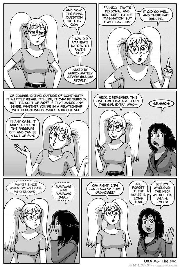 IN ANY CASE! Thus ends the Q&A. Monday will be the start of a new storyline.