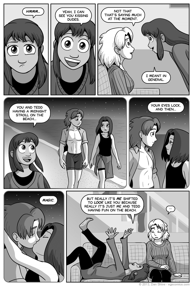 This comic wound up heavily delayed on account of me finding myself unsure of how I wanted to transition into the next scene and, ultimately, what all it was going to address. I may elaborate in upcoming comic commentaries, but for now, I'm just going to say that "transitions are hard you guys".