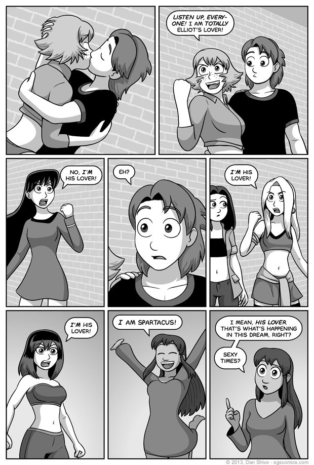 The basic execution of the Spartacus reference joke is one that I know with certainty has been done before by many people, but I couldn't help myself. It was just so natural to the moment that trying to write something else felt like forcing a car to suddenly change direction while driving at high speed. I don't think I could have done it without flipping the whole dang comic over.