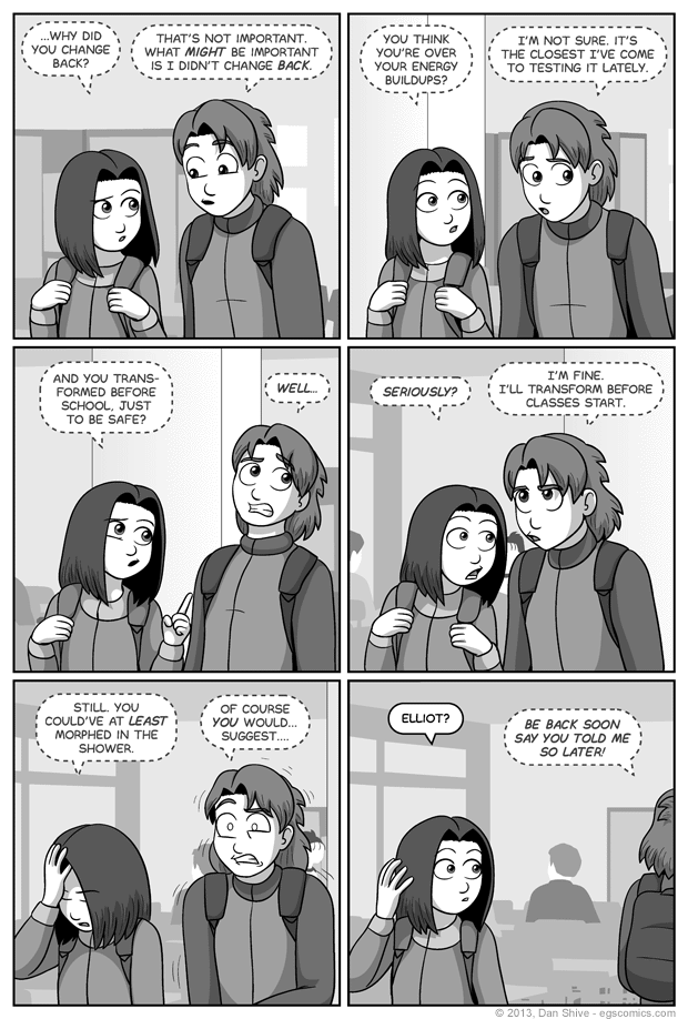 I had originally planned for this comic's backgrounds to be a whole lot simpler. Elliot and Tedd would essentially be the same, but basically, I imagined a wall, with its most fancy features possibly being bricks.
