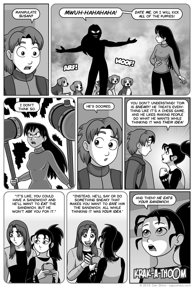 End result? A comic about villainous plans to kick puppies and steal sandwiches.