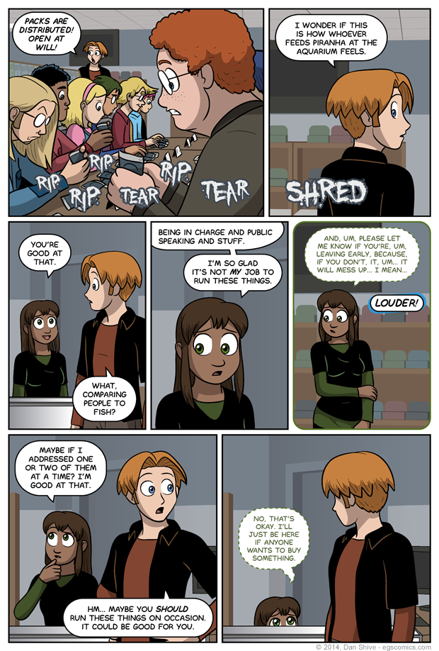 One might be wondering why Sarah and Tedd are separated, and the answer is simple: Even when all that's happening is the distribution of packs, players are told where to sit.