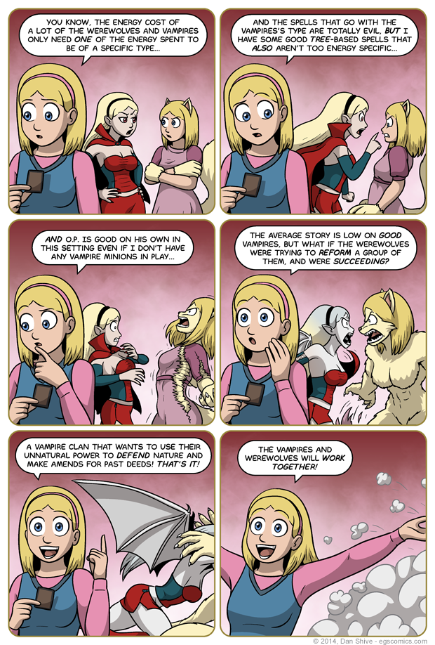 According to my own internal logic of how this representation works, the Vampire and Werewolf Sarahs really shouldn't be fighting giving Sarah's frame of mind and thinking during this comic. Well, THEY'RE FIGHTING ANYWAY.