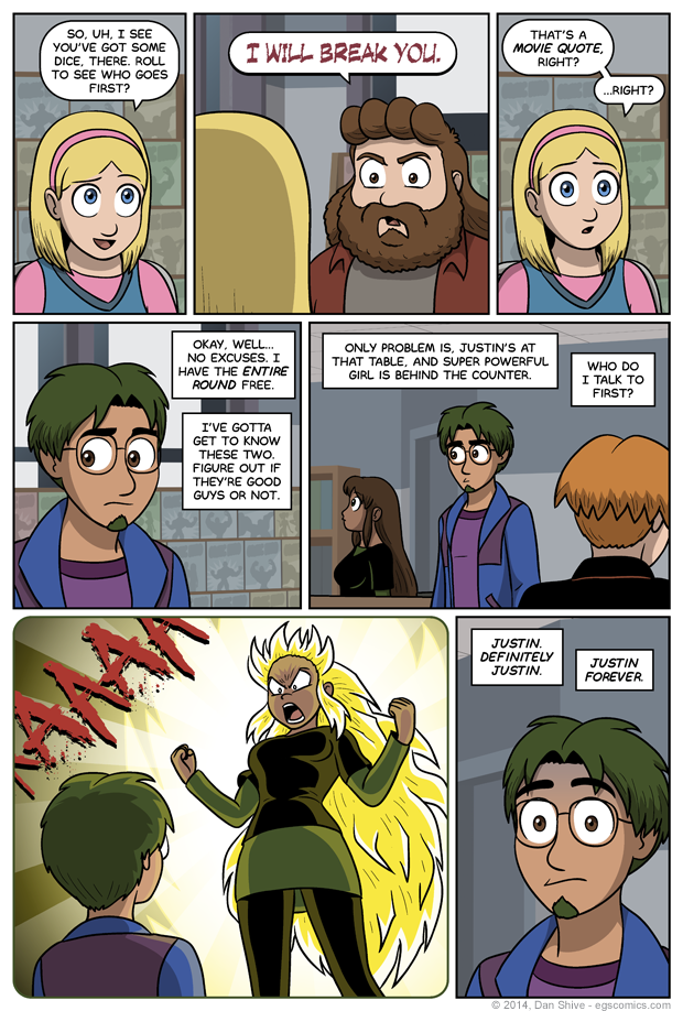 Speaking of things being referenced, panel six is totally referencing Azumanga Daioh. I mean, Dragon Ball Z. Sorry, I get those two confused.