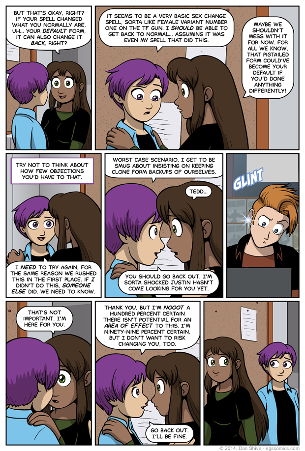 El Goonish Shive Introductions The Goo Shade, Part 1 Q&A #1 Shade, Part 2 Relations, Part 1 April Fools Week Relations, Part 2 Catnip Sister Part 1 - Open The Box Part 2 - Read The Rules Part 3 - Set Up The Pieces Part 4 - Play The Game Part 5 - Knock The Board Over Part 6 - Scattered Pieces Part 7 - Fist Fight Part 8 - Clean Up New And Old Friends Flipping Cardboard Lady Mysterious II slooF lirpA Squirrel Diplomacy Lunchtable Revelations Night Out Part 1 - Martial Arts Crew Part 2 - Elliot's Crew Part 3 - Ellen's Crew The Morning After Q&A #2 Tam Eh Tedd Painted Black Part 1 - Walk In The Park Part 2 - Missing Persons Part 3 - Interviewed By The Devil Part 4 - Into The Dungeon Part 5 - The Truth About Grace Part 6 - The Brewing Storm Part 7 - Fallen From Grace Part 8 - Humanity PB Special Features Shadows After Dark Sleepy Time Second Life The Child Left Behind Red Alert Before The Party Moping Squirrel Intro to South Party Recruiting Even More Recruiting Party Fashion Family Reuinion Grace's Birthday Party Part 1 - Arrivals And Presents Part 2 - Bending Genders Part 3 - Festivities Part 4 - Hold On Hope The After Party Q&A #3 Hidden Genesis Hidden Genesis In The Shadows The New Students Susan Draws The Line Squirrel In The Classroom Sister 2 Part 1 - The Trials Of Susan Part 2 - The Statue Part 3 - Pent-Up Magic Part 4 - Evil Monkey Part 5 - Moperville News Part 6 - Weregirl Part 7 - The Dark Clouds Gather Part 8 - Talon vs. Scythe Part 9 - Wrath of God Part 10 - Pandoras Box Q&A #4 Q&A #4 Bringing Silly Back Indiana Elliot And The TOSF T-Minus The Demon Ally Hammerchlorians - 1 Hammerchlorians - 2 Hammerchlorians - 3 T-Minus Dark Allegiance New And Old Flames - 1 New And Old Flames - 2 New And Old Flames - 3 New And Old Flames - 4 New And Old Flames - 5 New And Old Flames - 6 Q&A #5 Q&A #5 9001% Serious One Way Road Legends of Celida Death Sentence - 1 Death Sentence - 2 Death Sentence - 3 Death Sentence - 4 Death Sentence - 5 What Is Love Summer The End Of Spring Power Fantasy Rocks Fall Nobody Is Hired Nepotism Hair By The Numbers Duel Of The Discs There Be Whales Here There Be Whales Here Pt 2 There Be Whales Here Pt 3 The Dawn End Of An Era End Of An Era pt 2 Family Tree Family Tree Part 2 - Arrival Family Tree Part 3 - Par-TAY Family Tree Part 4 - Weirdness Family Tree Part 5 - A Troll Family Tree Part 6 - Banhammered Family Tree Part 7 - Hangover Q&A #6 Identity Identity Part 2 - Reactions Identity Part 3 - Cat Attack Identity Part 4 - Detective Sarah Identity Part 5 - Basement Chat Identity Part 6 - ILLOGICAL! Identity Part 7 - Dreams identity Part 8 - Ashley Identity Part 9 - Detective Susan Identity Part 10 - Ashley and Elliot Identity Part 11 - Epilogue Summer Moments Guest Comics Guest Comics #1 Guest Comics #2 Pandoras Box Squirrel Prophet SP - Part 2 SP - Final Battle So A Date At The Mall So A Date - Part 2 So A Date - Part 3 So A Date - Part 4 So A Date - Part 5 EGSNP - Question Mark Q&A 7 - The Requestioning Sister 3 - Catspaws Part 1 - Legacy Part 2 - The Will of Magic Part 3 - Reply Hazy Part 4 - Everyone Needs To Talk Part 5 - The Reservoir Part 6 - Maybe Sisters Part 7 - An Unkindness Part 8 - Awkwardness Ahead Part 9 - Traffic Freeze Part 10 - Fluidity Part 11 - All Of The Curse Words Part 12 - Misanthropy Part 13 - In Search Of Wisdom Part 14 - Sister Anxiety Part 15 - Elliot and Ellen Part 16 - BFFs Part 17 - Great Fairy Godmother Part 18 - Gathering Monsters Part 19 - Family Meetings Part 20 - Geminis Part 21 - The Other Dunkel Part 22 - Apocalypse Part 23 - The Fate Of Magic Part 24 - Elliots And Ellens Part 25 - Changes Part 26 - Epilogues The New World The Legend of Diane The Secret of Sam Q&A 8 - The Lord Of The Q&As Title Pending Title Pending 2 - Even More Pending Title Pending 3 - Untitled Party Title Pending 5 or 6 Balance Part 1 Part 2 Part 2-B Part 3 Part 4 Part 5 Part 6 Part 7 Part 8 Part 9 The Road Ahead Brother Father Our Future Recruitment Layers, Part 1 Layers, Part 2 Layers, Part 3 Layers, Part 4 Hope, Part 1 Hope, Part 2 Hope, Part 3 Hope, Part 4 Hope, Part 5 Hope, Part 6 Hope, Part 7 Hope, Part 8 Hope, Part 9 Hope, Part 10 Hope, Part 11 Hope, Part 12 False Kings False Kings, Part 1 False Kings, Part 2 False Kings, Part 3 False Kings, Part 4
