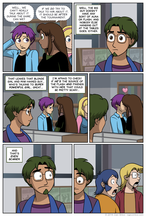 El Goonish Shive Introductions The Goo Shade, Part 1 Q&A #1 Shade, Part 2 Relations, Part 1 April Fools Week Relations, Part 2 Catnip Sister Part 1 - Open The Box Part 2 - Read The Rules Part 3 - Set Up The Pieces Part 4 - Play The Game Part 5 - Knock The Board Over Part 6 - Scattered Pieces Part 7 - Fist Fight Part 8 - Clean Up New And Old Friends Flipping Cardboard Lady Mysterious II slooF lirpA Squirrel Diplomacy Lunchtable Revelations Night Out Part 1 - Martial Arts Crew Part 2 - Elliot's Crew Part 3 - Ellen's Crew The Morning After Q&A #2 Tam Eh Tedd Painted Black Part 1 - Walk In The Park Part 2 - Missing Persons Part 3 - Interviewed By The Devil Part 4 - Into The Dungeon Part 5 - The Truth About Grace Part 6 - The Brewing Storm Part 7 - Fallen From Grace Part 8 - Humanity PB Special Features Shadows After Dark Sleepy Time Second Life The Child Left Behind Red Alert Before The Party Moping Squirrel Intro to South Party Recruiting Even More Recruiting Party Fashion Family Reuinion Grace's Birthday Party Part 1 - Arrivals And Presents Part 2 - Bending Genders Part 3 - Festivities Part 4 - Hold On Hope The After Party Q&A #3 Hidden Genesis Hidden Genesis In The Shadows The New Students Susan Draws The Line Squirrel In The Classroom Sister 2 Part 1 - The Trials Of Susan Part 2 - The Statue Part 3 - Pent-Up Magic Part 4 - Evil Monkey Part 5 - Moperville News Part 6 - Weregirl Part 7 - The Dark Clouds Gather Part 8 - Talon vs. Scythe Part 9 - Wrath of God Part 10 - Pandoras Box Q&A #4 Q&A #4 Bringing Silly Back Indiana Elliot And The TOSF T-Minus The Demon Ally Hammerchlorians - 1 Hammerchlorians - 2 Hammerchlorians - 3 T-Minus Dark Allegiance New And Old Flames - 1 New And Old Flames - 2 New And Old Flames - 3 New And Old Flames - 4 New And Old Flames - 5 New And Old Flames - 6 Q&A #5 Q&A #5 9001% Serious One Way Road Legends of Celida Death Sentence - 1 Death Sentence - 2 Death Sentence - 3 Death Sentence - 4 Death Sentence - 5 What Is Love Summer The End Of Spring Power Fantasy Rocks Fall Nobody Is Hired Nepotism Hair By The Numbers Duel Of The Discs There Be Whales Here There Be Whales Here Pt 2 There Be Whales Here Pt 3 The Dawn End Of An Era End Of An Era pt 2 Family Tree Family Tree Part 2 - Arrival Family Tree Part 3 - Par-TAY Family Tree Part 4 - Weirdness Family Tree Part 5 - A Troll Family Tree Part 6 - Banhammered Family Tree Part 7 - Hangover Q&A #6 Identity Identity Part 2 - Reactions Identity Part 3 - Cat Attack Identity Part 4 - Detective Sarah Identity Part 5 - Basement Chat Identity Part 6 - ILLOGICAL! Identity Part 7 - Dreams identity Part 8 - Ashley Identity Part 9 - Detective Susan Identity Part 10 - Ashley and Elliot Identity Part 11 - Epilogue Summer Moments Guest Comics Guest Comics #1 Guest Comics #2 Pandoras Box Squirrel Prophet SP - Part 2 SP - Final Battle So A Date At The Mall So A Date - Part 2 So A Date - Part 3 So A Date - Part 4 So A Date - Part 5 EGSNP - Question Mark Q&A 7 - The Requestioning Sister 3 - Catspaws Part 1 - Legacy Part 2 - The Will of Magic Part 3 - Reply Hazy Part 4 - Everyone Needs To Talk Part 5 - The Reservoir Part 6 - Maybe Sisters Part 7 - An Unkindness Part 8 - Awkwardness Ahead Part 9 - Traffic Freeze Part 10 - Fluidity Part 11 - All Of The Curse Words Part 12 - Misanthropy Part 13 - In Search Of Wisdom Part 14 - Sister Anxiety Part 15 - Elliot and Ellen Part 16 - BFFs Part 17 - Great Fairy Godmother Part 18 - Gathering Monsters Part 19 - Family Meetings Part 20 - Geminis Part 21 - The Other Dunkel Part 22 - Apocalypse Part 23 - The Fate Of Magic Part 24 - Elliots And Ellens Part 25 - Changes Part 26 - Epilogues The New World The Legend of Diane The Secret of Sam Q&A 8 - The Lord Of The Q&As Title Pending Title Pending 2 - Even More Pending Title Pending 3 - Untitled Party Title Pending 5 or 6 Balance Part 1 Part 2 Part 2-B Part 3 Part 4 Part 5 Part 6 Part 7 Part 8 Part 9 The Road Ahead Brother Father Our Future Recruitment Layers, Part 1 Layers, Part 2 Layers, Part 3 Layers, Part 4 Hope, Part 1 Hope, Part 2 Hope, Part 3 Hope, Part 4 Hope, Part 5 Hope, Part 6 Hope, Part 7 Hope, Part 8 Hope, Part 9 Hope, Part 10 Hope, Part 11 Hope, Part 12 False Kings False Kings, Part 1 False Kings, Part 2 False Kings, Part 3 False Kings, Part 4
