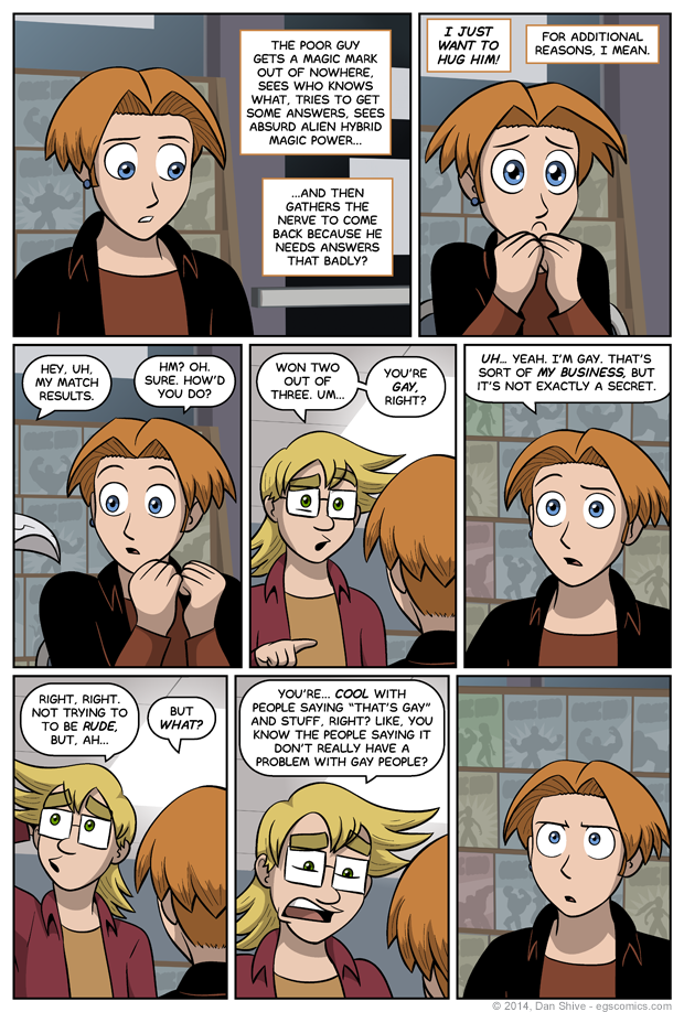 Some of you may look at the last five panels of this comic and immediately declare that you have words to share with me and are even now organizing them in your mind. To that I say STOP, and request you wait until tomorrow's comic. If you still want to send words my way after that, go right ahead.