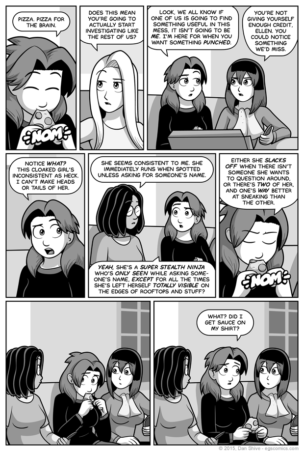 Of course, this way gave little opportunity for readers to guess that they would consider this possibility. The only solid clue was in panel five, and the conclusion to that clue was in panel six. So, ah... If you managed to guess that between panels, give yourself a congratulatory high-five?