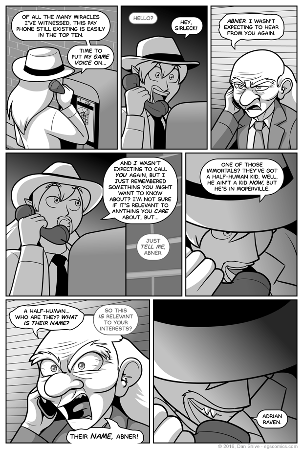 I'm not a huge fan of the dialogue in panel one, but I felt both parts of it necessary. Voltaire needed a pay phone, and in spite of there supposedly being 500,000+ left in the USA at the time of my posting this, they're only going to become more and more mythical than Big Foot as time goes on.