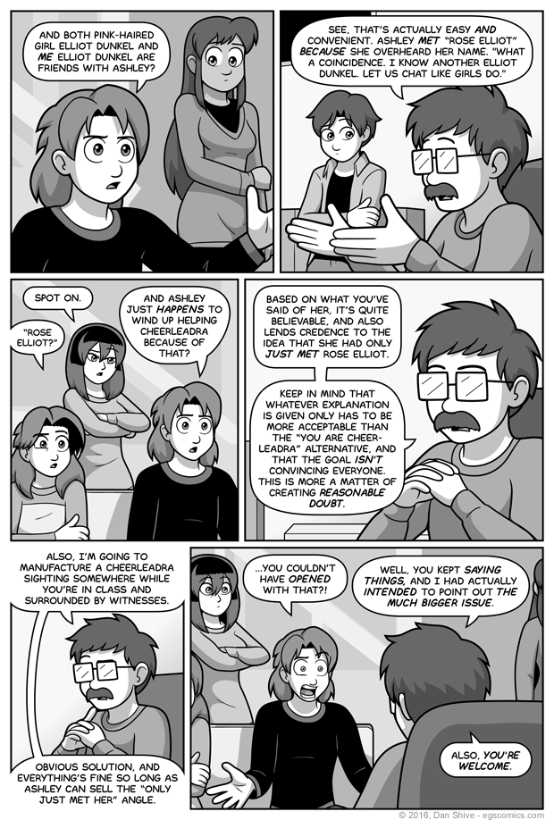 Much like pleasing everyone, you can't convince everyone. One need look no further than conspiracy theories to know that there will be those who cling to an idea no matter how strong the evidence against it. Mr. Verres could prove Elliot can't be Cheerleadra beyond a shadow of a doubt, and there'd still be people claiming they're one and the same.