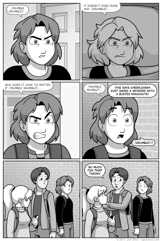 AND FOR THE RECORD, that's a clean shirt in the last four panels! I was going to say "he just has a closet full of those", but the part of the sleeves by the wrist are looser than in the past few comics, so it's definitely a different shirt anyway.
