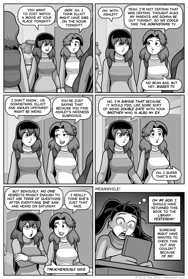 I try not to speak for the comic (which can get tricky, what with commentary under each one), but I hope it's clear from the last panel (and previous Ashley moments) that I'm not trying to set her up as being deceptively nice or insincere.