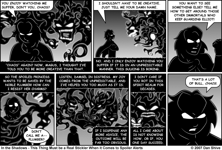 I have to say, it’s really convenient that Chaos refuses to give its real name and that its ok with getting a new name with each meeting. It makes it a lot easier for me because, let’s face it, names aren’t my strong suit. Just look at what I call my comic.
