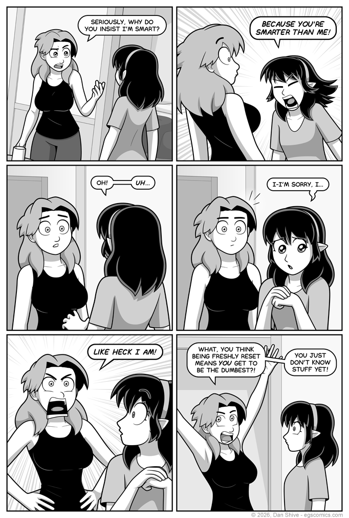 El Goonish Shive Introductions The Goo Shade, Part 1 Q&A #1 Shade, Part 2 Relations, Part 1 April Fools Week Relations, Part 2 Catnip Sister Part 1 - Open The Box Part 2 - Read The Rules Part 3 - Set Up The Pieces Part 4 - Play The Game Part 5 - Knock The Board Over Part 6 - Scattered Pieces Part 7 - Fist Fight Part 8 - Clean Up New And Old Friends Flipping Cardboard Lady Mysterious II slooF lirpA Squirrel Diplomacy Lunchtable Revelations Night Out Part 1 - Martial Arts Crew Part 2 - Elliot's Crew Part 3 - Ellen's Crew The Morning After Q&A #2 Tam Eh Tedd Painted Black Part 1 - Walk In The Park Part 2 - Missing Persons Part 3 - Interviewed By The Devil Part 4 - Into The Dungeon Part 5 - The Truth About Grace Part 6 - The Brewing Storm Part 7 - Fallen From Grace Part 8 - Humanity PB Special Features Shadows After Dark Sleepy Time Second Life The Child Left Behind Red Alert Before The Party Moping Squirrel Intro to South Party Recruiting Even More Recruiting Party Fashion Family Reuinion Grace's Birthday Party Part 1 - Arrivals And Presents Part 2 - Bending Genders Part 3 - Festivities Part 4 - Hold On Hope The After Party Q&A #3 Hidden Genesis Hidden Genesis In The Shadows The New Students Susan Draws The Line Squirrel In The Classroom Sister 2 Part 1 - The Trials Of Susan Part 2 - The Statue Part 3 - Pent-Up Magic Part 4 - Evil Monkey Part 5 - Moperville News Part 6 - Weregirl Part 7 - The Dark Clouds Gather Part 8 - Talon vs. Scythe Part 9 - Wrath of God Part 10 - Pandoras Box Q&A #4 Q&A #4 Bringing Silly Back Indiana Elliot And The TOSF T-Minus The Demon Ally Hammerchlorians - 1 Hammerchlorians - 2 Hammerchlorians - 3 T-Minus Dark Allegiance New And Old Flames - 1 New And Old Flames - 2 New And Old Flames - 3 New And Old Flames - 4 New And Old Flames - 5 New And Old Flames - 6 Q&A #5 Q&A #5 9001% Serious One Way Road Legends of Celida Death Sentence - 1 Death Sentence - 2 Death Sentence - 3 Death Sentence - 4 Death Sentence - 5 What Is Love Summer The End Of Spring Power Fantasy Rocks Fall Nobody Is Hired Nepotism Hair By The Numbers Duel Of The Discs There Be Whales Here There Be Whales Here Pt 2 There Be Whales Here Pt 3 The Dawn End Of An Era End Of An Era pt 2 Family Tree Family Tree Part 2 - Arrival Family Tree Part 3 - Par-TAY Family Tree Part 4 - Weirdness Family Tree Part 5 - A Troll Family Tree Part 6 - Banhammered Family Tree Part 7 - Hangover Q&A #6 Identity Identity Part 2 - Reactions Identity Part 3 - Cat Attack Identity Part 4 - Detective Sarah Identity Part 5 - Basement Chat Identity Part 6 - ILLOGICAL! Identity Part 7 - Dreams identity Part 8 - Ashley Identity Part 9 - Detective Susan Identity Part 10 - Ashley and Elliot Identity Part 11 - Epilogue Summer Moments Guest Comics Guest Comics #1 Guest Comics #2 Pandoras Box Squirrel Prophet SP - Part 2 SP - Final Battle So A Date At The Mall So A Date - Part 2 So A Date - Part 3 So A Date - Part 4 So A Date - Part 5 EGSNP - Question Mark Q&A 7 - The Requestioning Sister 3 - Catspaws Part 1 - Legacy Part 2 - The Will of Magic Part 3 - Reply Hazy Part 4 - Everyone Needs To Talk Part 5 - The Reservoir Part 6 - Maybe Sisters Part 7 - An Unkindness Part 8 - Awkwardness Ahead Part 9 - Traffic Freeze Part 10 - Fluidity Part 11 - All Of The Curse Words Part 12 - Misanthropy Part 13 - In Search Of Wisdom Part 14 - Sister Anxiety Part 15 - Elliot and Ellen Part 16 - BFFs Part 17 - Great Fairy Godmother Part 18 - Gathering Monsters Part 19 - Family Meetings Part 20 - Geminis Part 21 - The Other Dunkel Part 22 - Apocalypse Part 23 - The Fate Of Magic Part 24 - Elliots And Ellens Part 25 - Changes Part 26 - Epilogues The New World The Legend of Diane The Secret of Sam Q&A 8 - The Lord Of The Q&As Title Pending Title Pending 2 - Even More Pending Title Pending 3 - Untitled Party Title Pending 5 or 6 Balance Part 1 Part 2 Part 2-B Part 3 Part 4 Part 5 Part 6 Part 7 Part 8 Part 9 The Road Ahead Brother Father Our Future Recruitment Layers, Part 1 Layers, Part 2 Layers, Part 3 Layers, Part 4 Hope, Part 1 Hope, Part 2 Hope, Part 3 Hope, Part 4 Hope, Part 5 Hope, Part 6 Hope, Part 7 Hope, Part 8 Hope, Part 9 Hope, Part 10 Hope, Part 11 Hope, Part 12 False Kings False Kings, Part 1 False Kings, Part 2 False Kings, Part 3 False Kings, Part 4 False Kings, Part 5 False Kings, Part 6 False Kings, Part 7