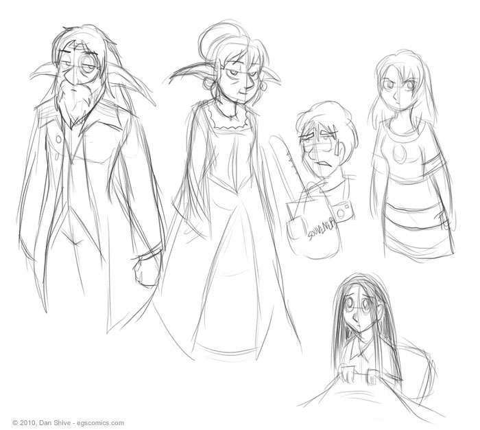 The immortals are dressed in late 18th century upper-class clothing, and their ears are clearly extra long and droopy. While an elven-like look is one of the reasons for their pointy ears, the reason it is common for immortals to have big noses and ears is because I've been told that people's ears and noses continue to get bigger as they grow older. This logically lead me to conclude that immortals would have big ears and noses, though I've clearly set some limits on how big their sniffers get.