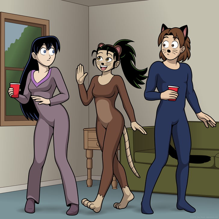 Requested by Martin - Susan (accidentally dressed up as Counselor Troi) meeting Elliot (in a cat costume) and Ashley (in an adorable mouse outfit). Costume parties exist, iirc.